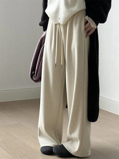 ストレートパンツ ワイドパンツ ガウチョパンツ レディース 秋冬 ワイド スウェット ウエストゴム ゆったり 体型カバー ロングパンツ 無地 無地パンツ おしゃれ スウェットパンツ | koookooo