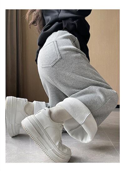 裏起毛 ワイドパンツ ガウチョパンツ レディース ウエストゴム カーブパンツ 秋冬 ロングパンツ 体型カバー ト付き ロング丈 ストレートパンツ ゆったり 無地 パンツ
