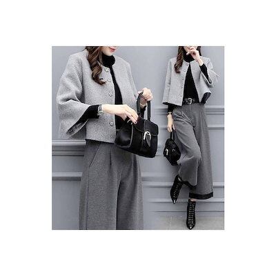 韓国のファッションスーツセットアップ ワイドパンツ レディース 秋冬 パンツ ウール混 ガウチョパン