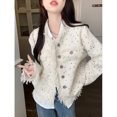 新作ファッション トップス レディースコート 冬アウター ジャケット カラーフリンジの小香風コートゆったり長袖トップス