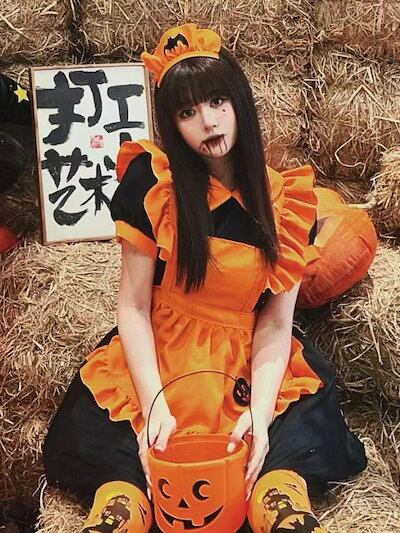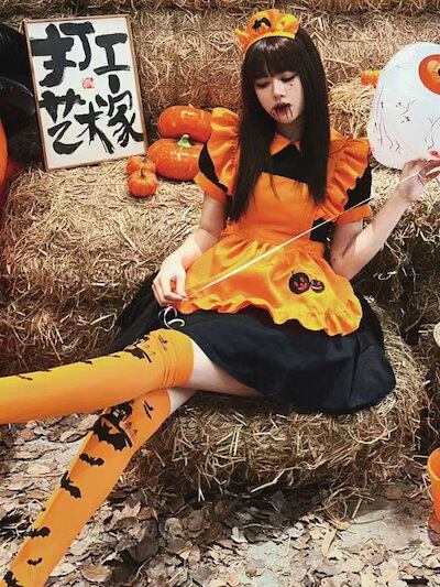 ロリータコスプレゲーム カボチャ ハロウィン コスプレ メイド服 お化け祭りテーマパーティーオレンジコウモリメイド 仮装 洋服