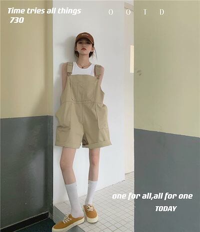 サロペット 韓国ファッション ゆったり 百掛け レディース オールインワン ロングパンツズボン フレアパンツ オーバーオール ワイドパンツ 春服