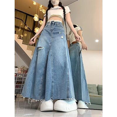デニムスカート レディース Aラインスカート ロングスカート マキシスカート 体型カバー 着痩せ スカート 韓国ファッション レアスカート
