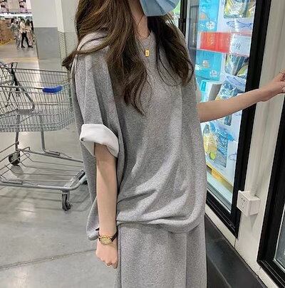 2024夏 カジュアル おしゃれ 二点セット 薄手 ゆったり 着痩せ セット Tシャツ スカート ルームウェア 韓国ファッション く楽ちんセットアッ
