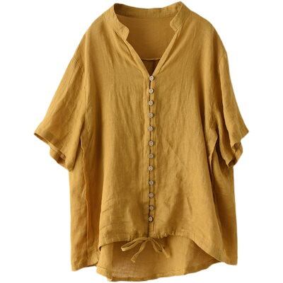 リネン素材トップス 無地 シャツ レディース 半袖 綿麻 ゆったり ストラップ
