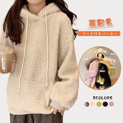 秋 冬 アウター モコモコ 裏起毛 パーカー 長袖 フード付き パーカー レディース トップス
