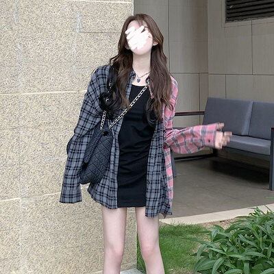 シャツ 2025秋の新デザインセンスチェックシャツ女ゆったり外着長袖シャツ トップス シースルートップス ブラウス