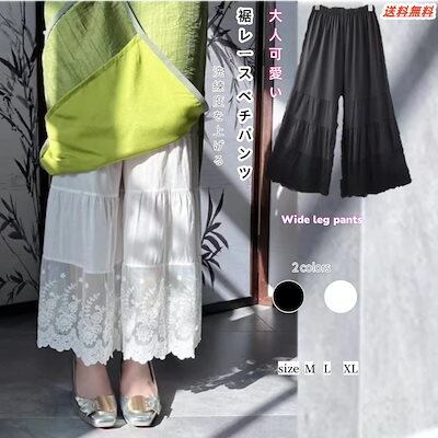【2025新入荷】【送 料 無 料】ペチパンツ レース ペチコート リネン タック ガウチョ パンツ 白 ロング ワンピース下 裾レース 春夏秋 九分丈 ボトムス 下着 レディース かわいい ナチュラ | koookooo