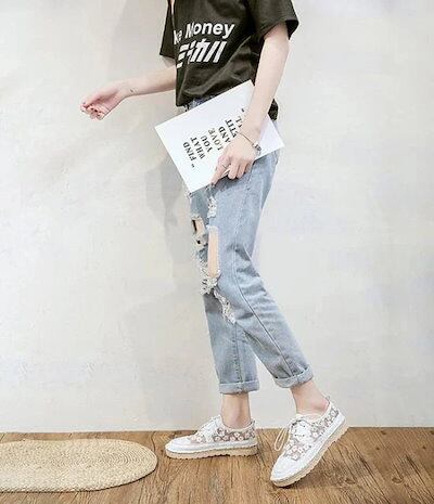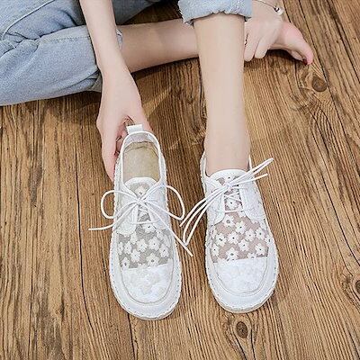 25福袋-スニーカー レディース シューズ 靴 スリッポン レース 花柄 キャンバス 透け感 通気 耐摩耗性