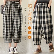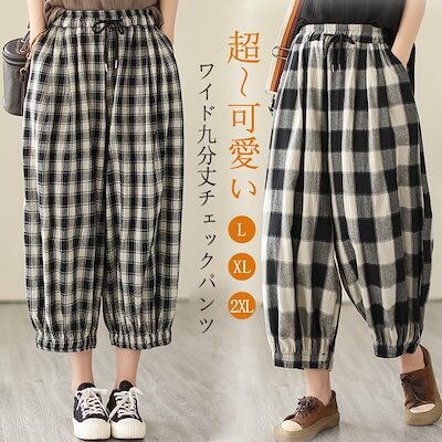 薄手 ゆったり 春夏 九分丈 アンクルパンツ 部屋着 リネン チェック レディース イージーパンツ テーパード ウェスト紐 チェックパンツ パンツ 可愛い ギンガムチェック 総ゴム ポケットサルエルパ | koookooo
