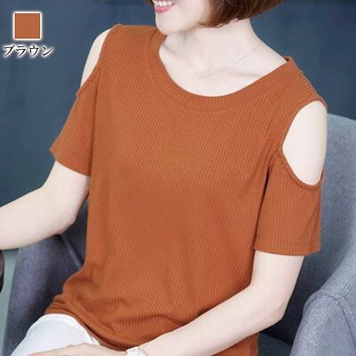 Tシャツ レディース 肩あきリブTシャツ ブラウス 5分袖 春 スポーツ ゆったり ブラック 40代 ロゴ カジュアル 7分袖 薄手 Vネック かわいい ティーシャツ 大人 人気 涼しい シャツ カッ | koookooo