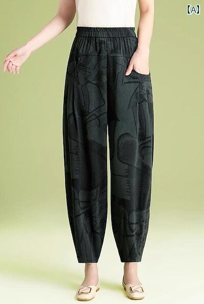 ウエストゴム パンツ レディース 夏 薄手 着痩せ ドレープ 花柄 9分丈 涼しい 快適 ワイドレッグ ダークグリーン アプリコット ポケット 大きいサイズ 楽ちん 旅行 おでかけ ミセス | koookooo
