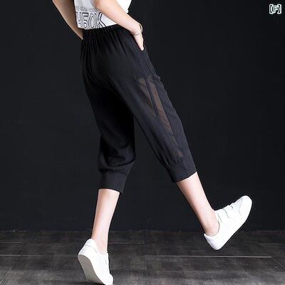 パンツ レディース ジョガー 長ズボン ウエストゴム 大きいサイズ 薄手 メッシュ 夏 ひんやり 涼しい 9分丈 クロップド ポケット 裾絞り ドロスト おしゃれ カジュアル シンプル 美脚 着痩せ | koookooo