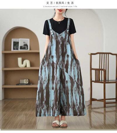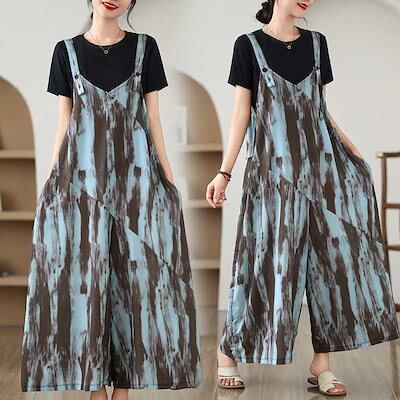 「ファットガール」 夏 大きいサイズ パンツ 水墨 プリント スリム オーバーオール ワイドパンツ 体型カバー レディース メガ割