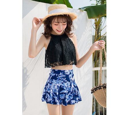 ビキニ水着レディース 夏 ビキニ2点セット水着 体型カバー 韓国風 レース フレア 小胸バンドゥビキニ 水着 セパレート 40代 可愛い スイムウェア 温泉 ママ水着
