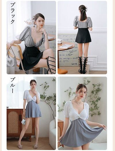 水着 レディース ワンピース 体型カバー水着 大きいサイズ ぽっちゃり かわいい おしゃれ フリル 袖 ハイウエスト 露出控えめ カットアウト カッティング 二の腕 お尻 太もも お腹 カバーアップ | koookooo