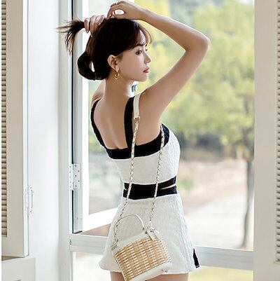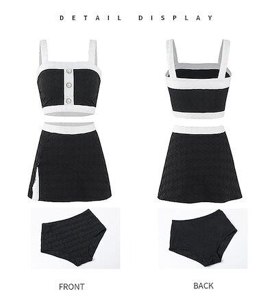 レディース タンキニ 黒白 水着 韓国 盛れる 体型カバー 露出控えめ 旅行 温泉 へそ出し バックシャン セパレート オトナ女子 スイムウェア 温泉 盛れる エレガント リゾート 小胸 水陸両用 海 | koookooo