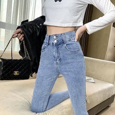 ストレッチ ジーンズ レディース 春 夏 着痩せ オールマッチ 韓系 体型カバーストレート ドローストリングパンツ ジーンズ