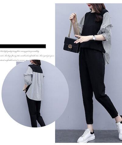 パンツスーツ セットアップ パンツドレス レディース 切り替え レギンスパンツ スキニーパンツ 大きいサイズ フォーマル シャツ ブラウス シンプル 2点セット 半袖 春 夏 秋 冬 オフィス OL | koookooo