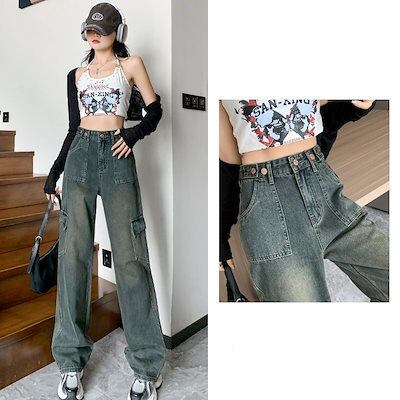 デニムパンツ 脚長効果!スキニーデニムパンツ 韓国ファッション デニムパンツ レディース 美脚 パンツワイドパンツクラシックロングパンツズボンワイドパンツ レディース シンプルデニムパンツメガ割 | koookooo