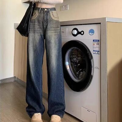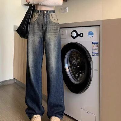 レトロなレトロなストレートジーンズ女性秋のデザイン感小衆高腰垂直感ストレートパンツ