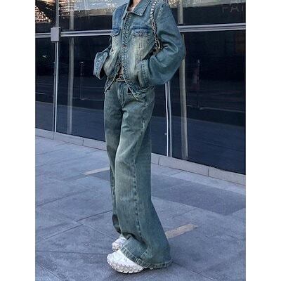ストレートジーンズの女性秋の新型高級感水洗いは古い垂れ下がった感じのワイドパンツを作る