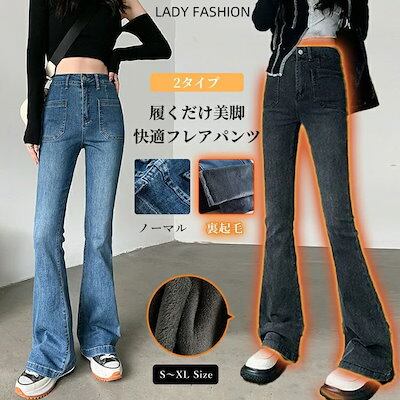 新品入荷 ノーマル 裏起毛 2タイプ 選べる ストレッチ デニムパンツ レディース パンツ ズボン フレアパンツ ジーンズ レギパン フルレングス 美脚 脚長 黒 チャコール きれいめカ | koookooo