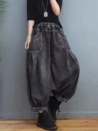 デニムパンツ レディース ワイド アンクル丈 サルエルパンツ レディース サーカスパンツ デニム バルーン タック ジーンズ レディース ワイド パンツ 超ワイド ブラック ウォッシュ ユーズ | koookooo