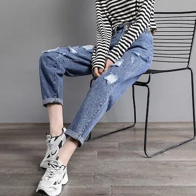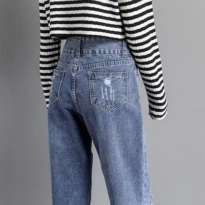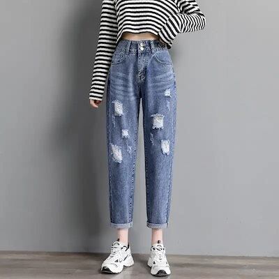 新型ファッション気質破洞ジーンズ レディースデニムパンツハイウエストジーンズ