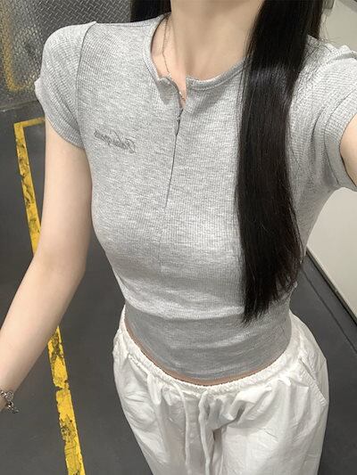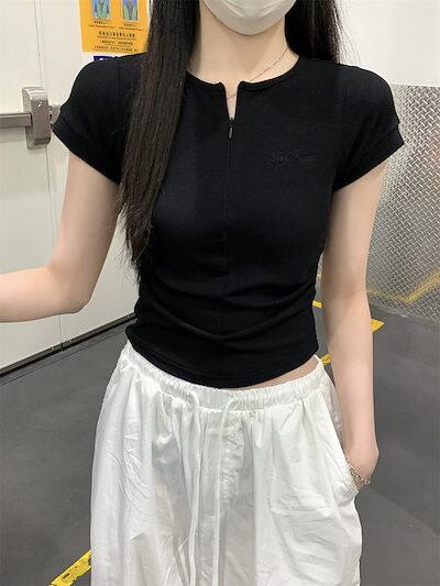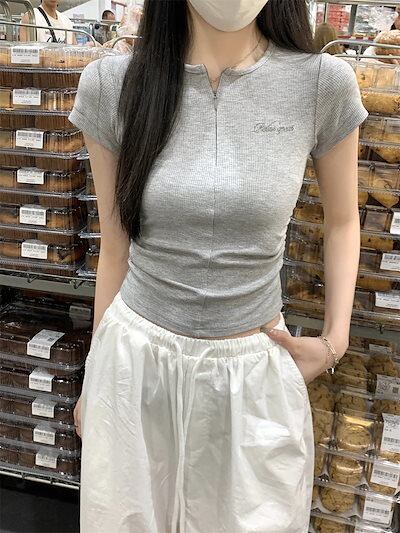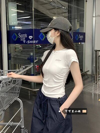 2025春夏 Tシャツ レディース 半袖 韓国風 プリント ショート丈 トップス スポーツミックスストリートバイカラーおしゃれ系ラウンドネックスリーブカジュアルハーフ大人可愛いスポーティー配色T | koookooo