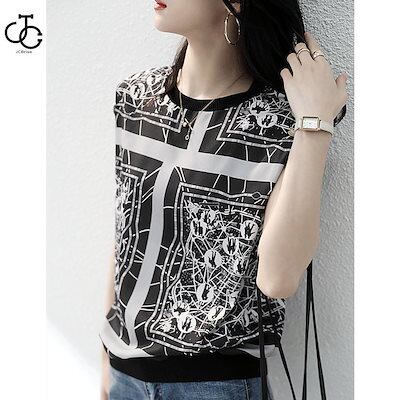ブラウス レディース 40代 春夏 オシャレブラウス シフォンブラウス プリント 上品 Tシャツ 半袖トップス おしゃれ カジュアル 通勤 ゆったりtシャツ 30代 50代