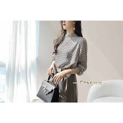 プリント スタンドネック フェミニン 長袖 シフォン ブラウス 春 レディース