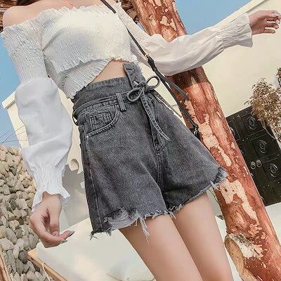 ショーツデニムパンツレディース夏2025韓国ファッション 新作ウエストゆったり着痩せ バインド ワイドパンツ ボトムス