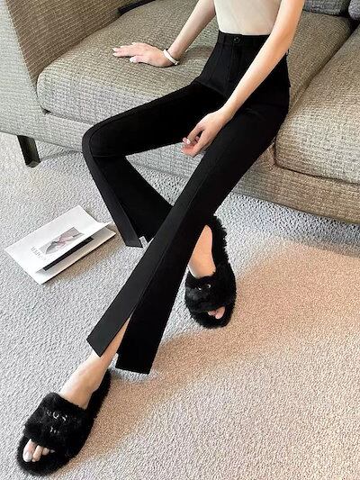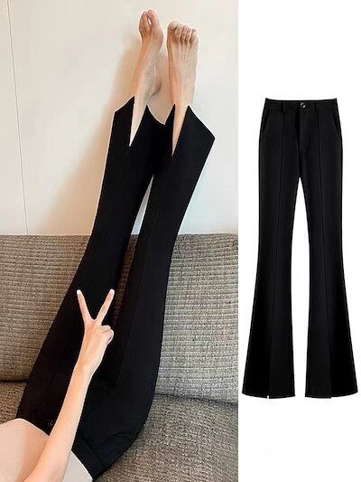 3日以内出荷ワイドパンツかっこいいスラックスパンツ ワイドパンツフレアパンツのハイウエストドレープ感スリム開叉パンツ小柄九分パンツレディース 韓国ファッション
