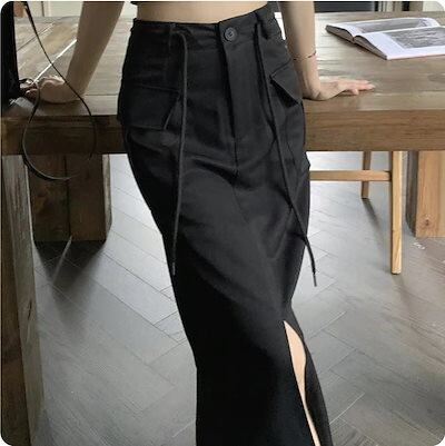 カーゴスカート ハイウエスト スリット ロングスカート Aライン スカート レトロ 韓国ファッション レディース 大人可愛い ガーリー カジュアル