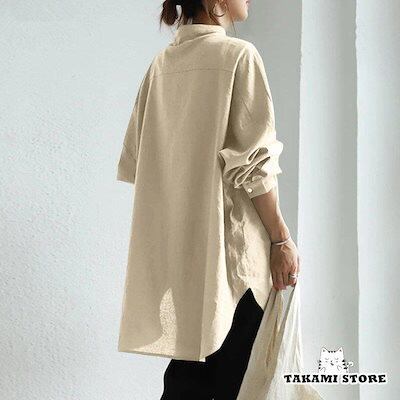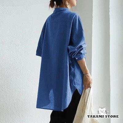 トップス レディース 綿麻シャツ ブラウス tシャツ ロング 長袖 春 無地 大きいサイズ ドルマン袖 40代 ゆったり 体型カバー シンプル 部屋着 50代