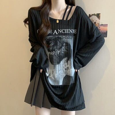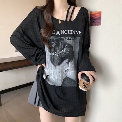 本日の限定商品長袖Tシャツ 秋のゆったりトップスボトムシャツ スウェット スエット ロンT ロングTシャツ ロンティー トレーナー 長袖tシャツ レディース tシャツ 長袖 レディース | koookooo