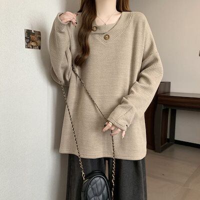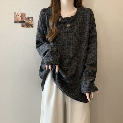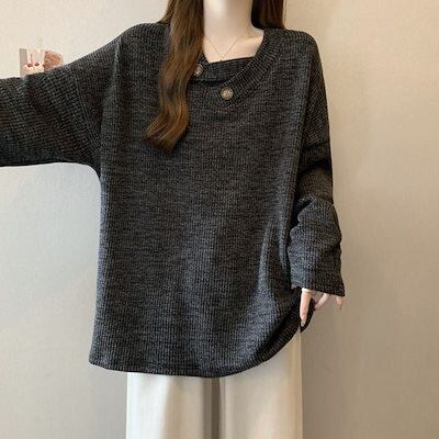 本日の限定商品ミドル丈プレミアムルーズVネック長袖トップス スウェット スエット ロンT ロングTシャツ ロンティー トレーナー 長袖tシャツ レディース tシャツ 長袖 レディース | koookooo