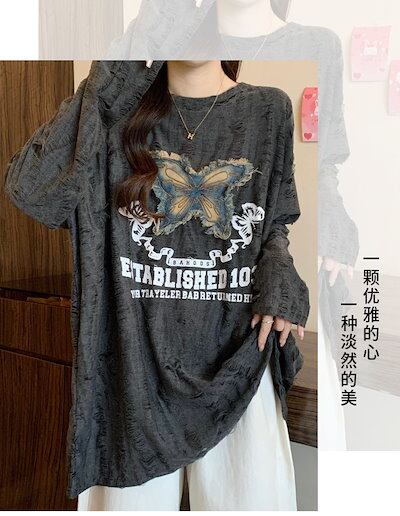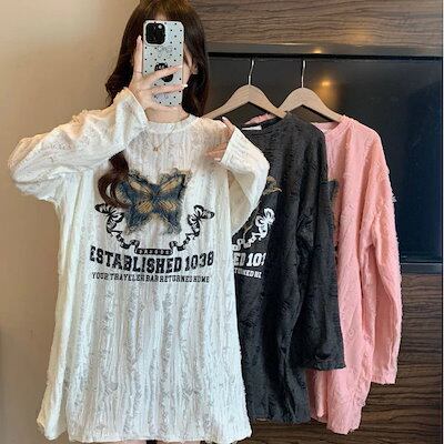 本日の限定商品バタフライショルダー長袖Tシャツ 2024 初秋新作ミドル丈トップス スウェット スエット ロンT ロングTシャツ ロンティー トレーナー 長袖tシャツ レディース tシャツ 長袖 レデ | koookooo