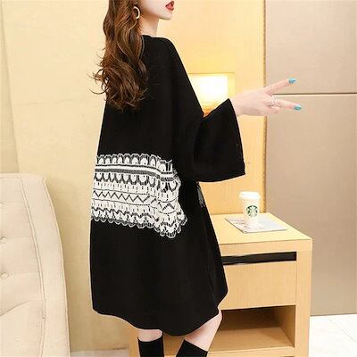 選べる福袋2025-トップス 半袖 服 ゆったり Tシャツ カラー刺繍 VERSIZE 体型カバー 着痩せ レディース服 ロング丈