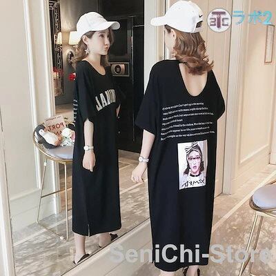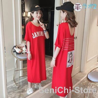 (5月新品)半袖 Tシャツ ワンピース ロング ワンピース レディース 春 夏 大きいサイズ 韓国 ファッション パーティー ドレス 着痩せ ゆったり リゾートワンピース