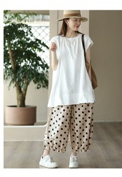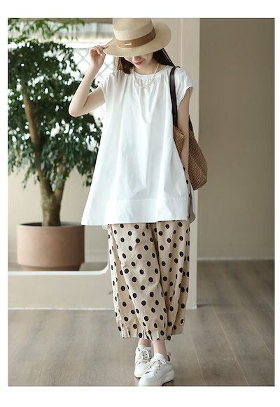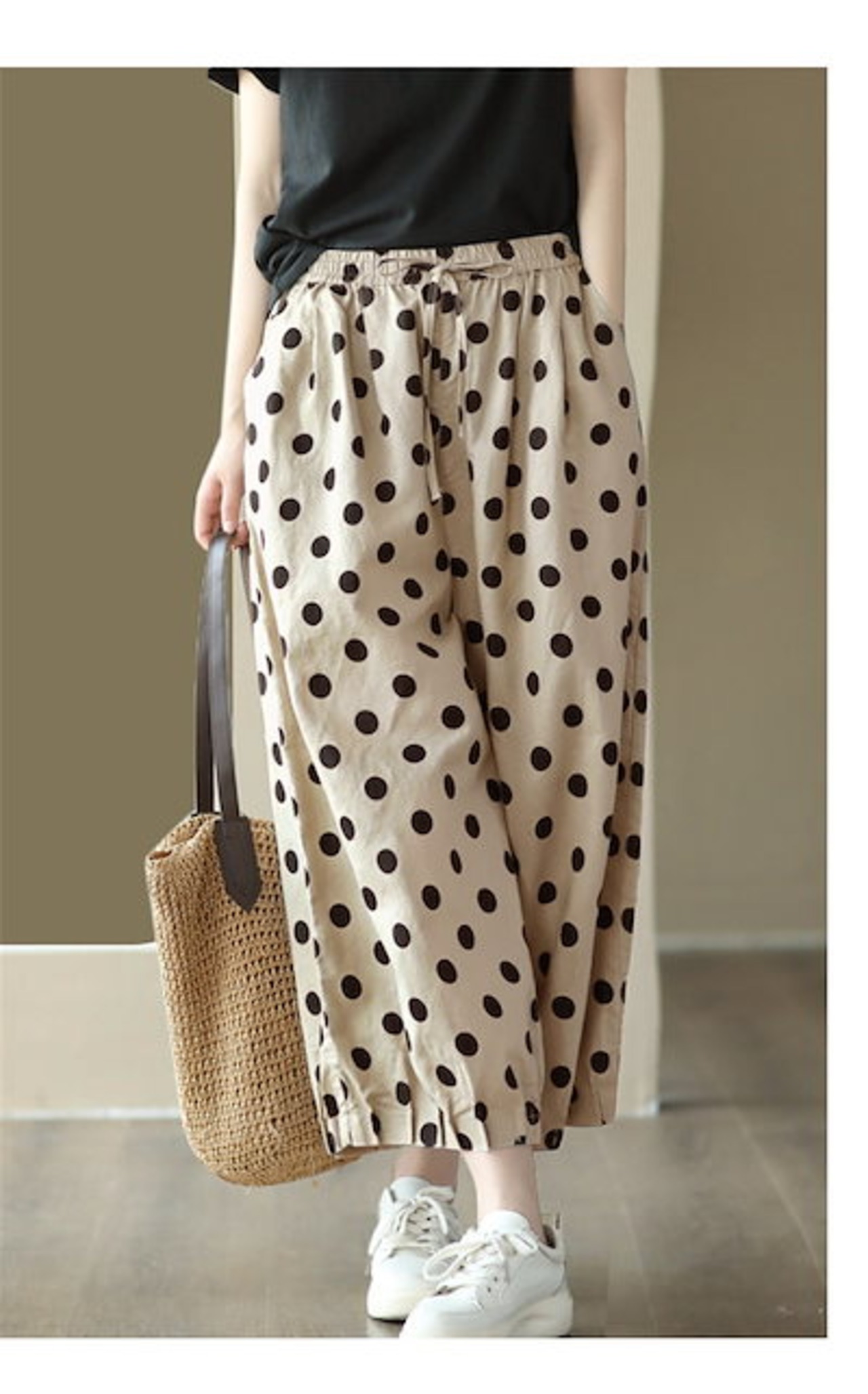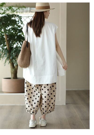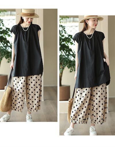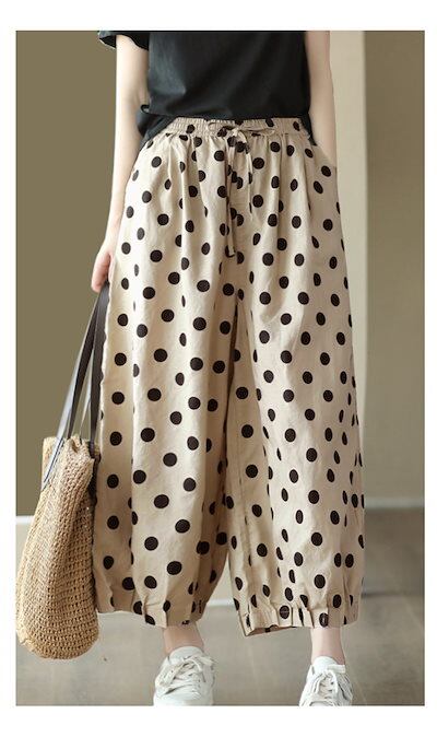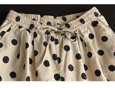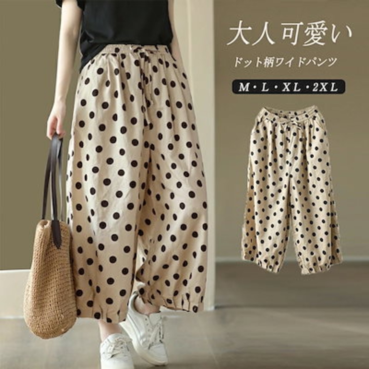 ワイドパンツ ガウチョパンツ レディース ロングパンツ ボトムス ワイド パンツ 9分丈 夏 ワイド ハイウエスト タックパンツ パンツ ドット柄 大きいサイズ ガウチョ パンツ 九分丈 ズボン ゆっ | koookooo
