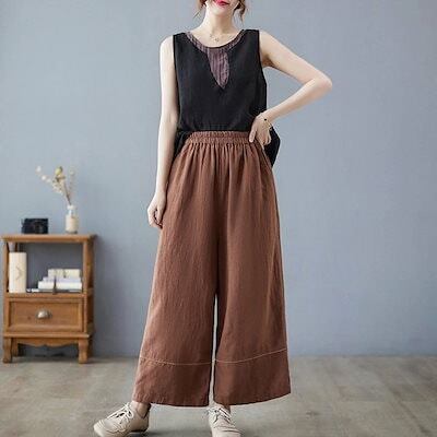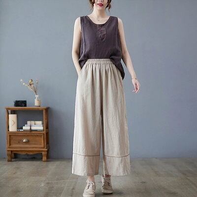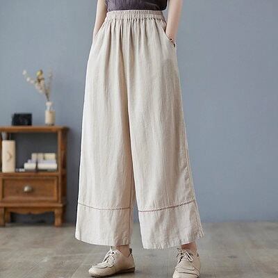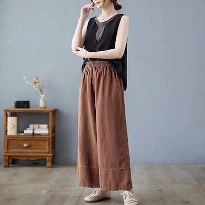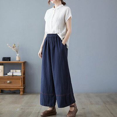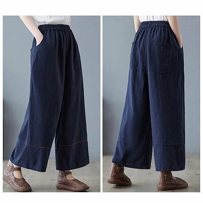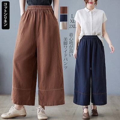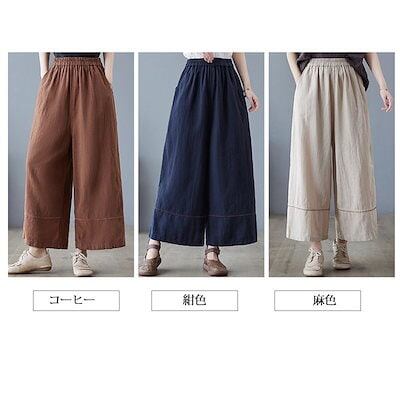 ワイドパンツ レディース ガウチョパンツ スカーチョ パンツ ボトムス 綿麻 リネンパンツ 春 夏 ロングパンツ ワイド ガウチョ きれいめ ストレートパンツ コットン リネン ハイウエスト ウエスト | koookooo