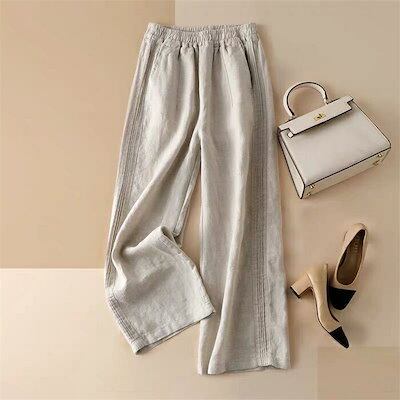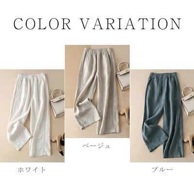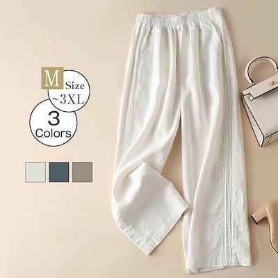 パンツ ワイドパンツ レディース 春夏 ワイド チノパン 大きいサイズ 薄手 綿麻 イージーパンツ ハイウエスト 楽ちん ウエストゴム ロングパンツ チノパンツ ゆるパンツ リラックス ボトムス 無地 | koookooo