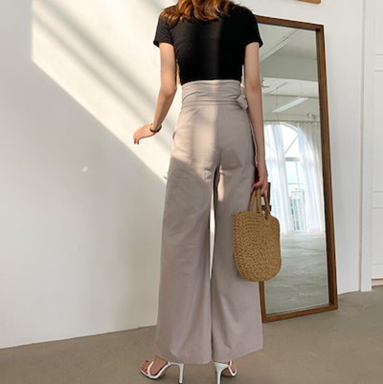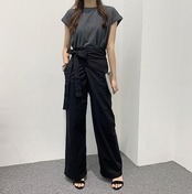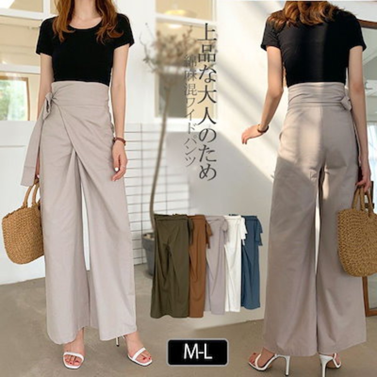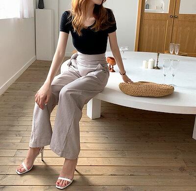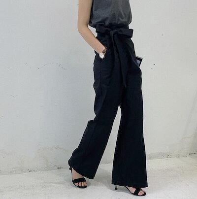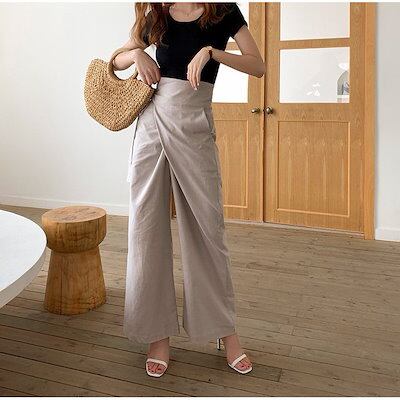 タックワイドパンツ フレアパンツ ワイドパンツ レディース ガウチョパンツ きれいめ 夏 春 ロング丈 ロングパンツ 綿麻混 ハイウエスト 凉しい 着痩せ 体型カバー おしゃれ 上品 綿麻パンツ 通勤 | koookooo