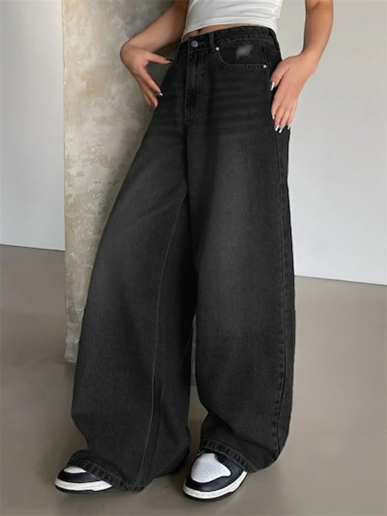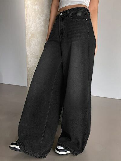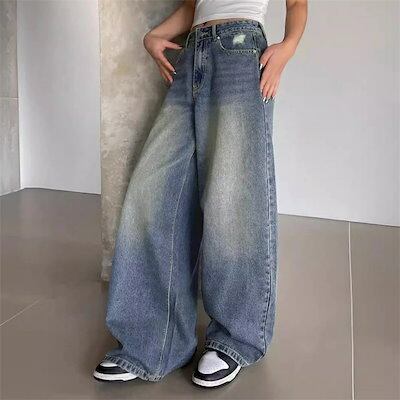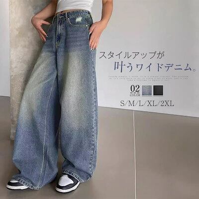 パンツ ボトムス デニム パンツ レディース ワイドパンツ ハイウエスト 股上深め ゆったり 体型カバー 美脚 華奢見え 着痩せ 脚長効果 ボリューム タックパンツ 美脚 細見え ガウチョパンツ スカ | koookooo