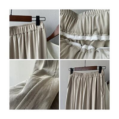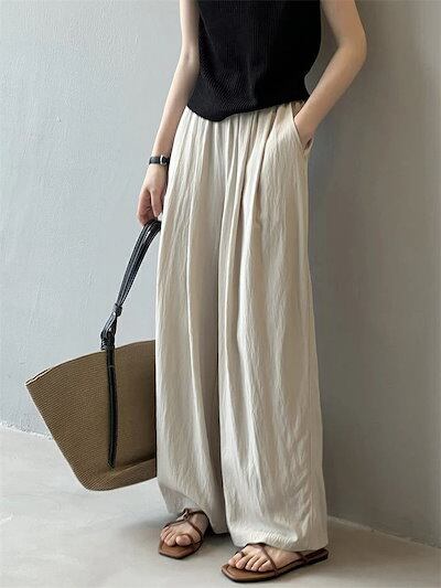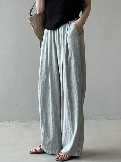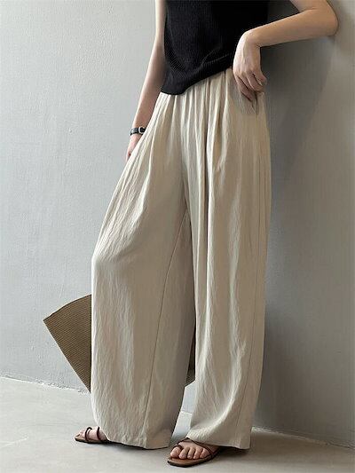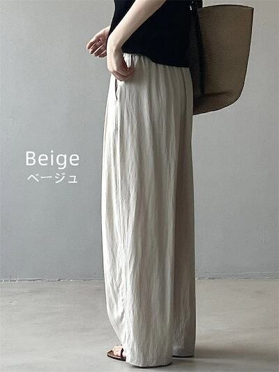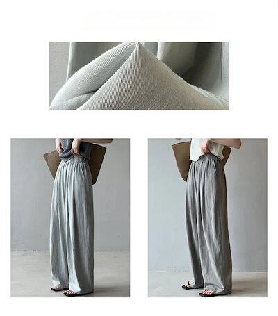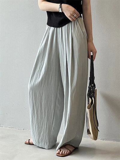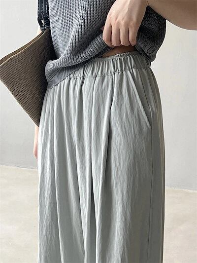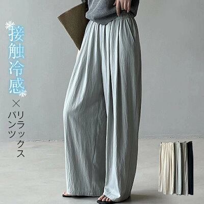 ワイドパンツ 接触冷感 薄手 涼しい レディース ボトム パンツ ワイド ガウチョ ガチョウパンツ ズボン ロング ロングパンツ リラックスパンツ ハイウエスト ゴム ポケット付き 無地 シンプル 快 | koookooo