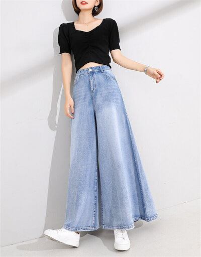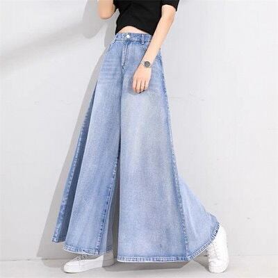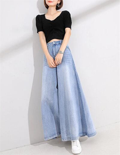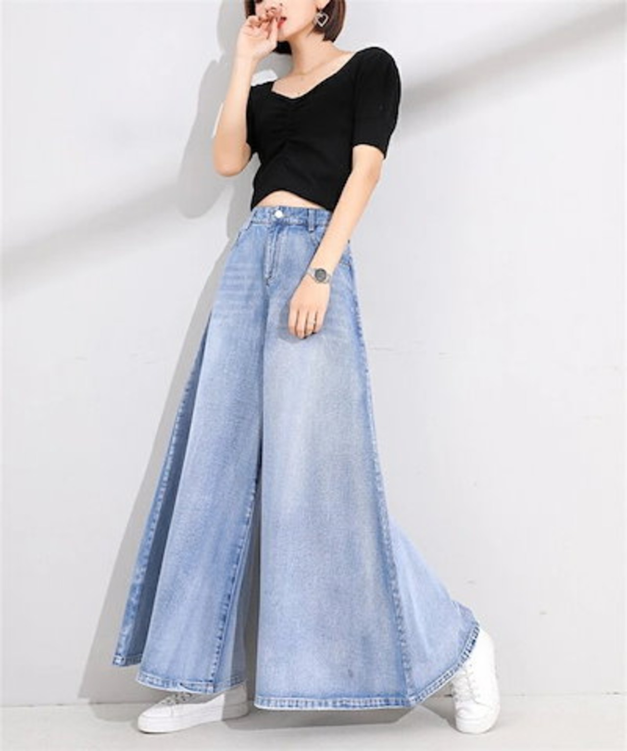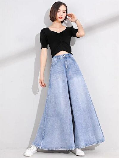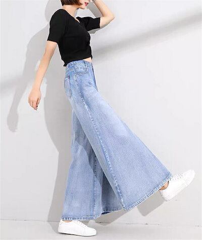 デニムパンツ デニムワイドパンツ レディース デニム パンツ ワイドパンツ ハイウエスト ポケット付き ワイド フレアパンツ ボトムス ズボン 無地 大きいサイズ ゆったり 着?せ 大人 楽ちん 美 | koookooo