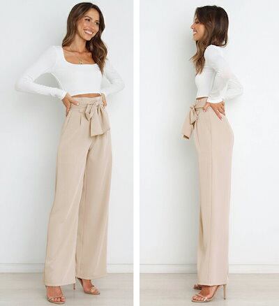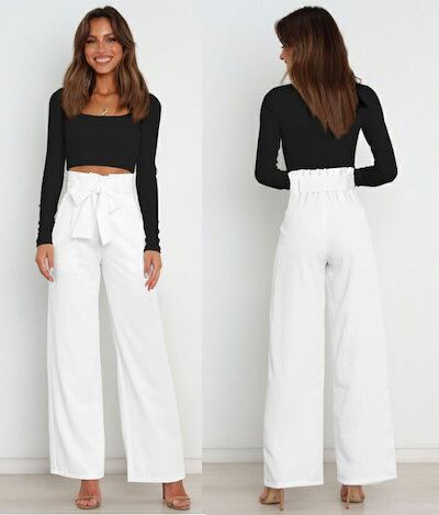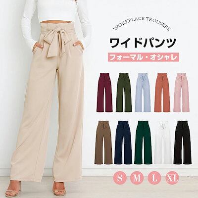 ガウチョパンツ ワイドパンツ スカンツ おしゃれ リボン ロングパンツ 春夏 春秋 無地 レディース ボトムス 体型カバー ハイウエスト フォーマル 着痩せ ロング丈 パンツ ゆったり 美脚 オシャレ | koookooo