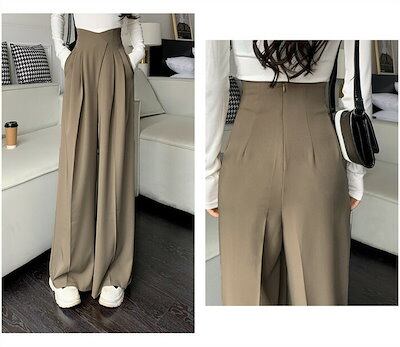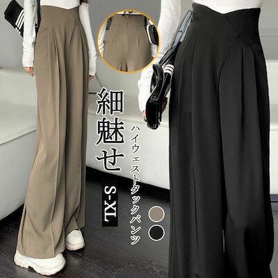 タックワイドパンツ レディース ボトムス 春 夏 イージーパンツ ワイドパンツ タック スラックス 美シルエット オリジナル タックパンツ ハイウエスト ウエストファスナー ロング丈 きれいめ 通勤 | koookooo